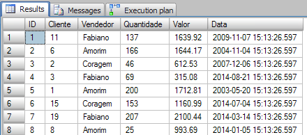 SELECT Cliente, Vendedor, Quantidade, Valor, Data