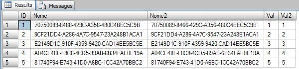 INSERT INTO TabTeste(Nome, Val) VALUES(NEWID(), 5)