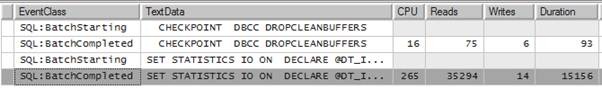 Table ‘Produtos’. Scan count 1, logical reads 2283, physical reads 3, read-ahead reads 2270